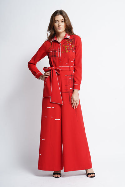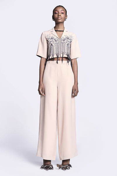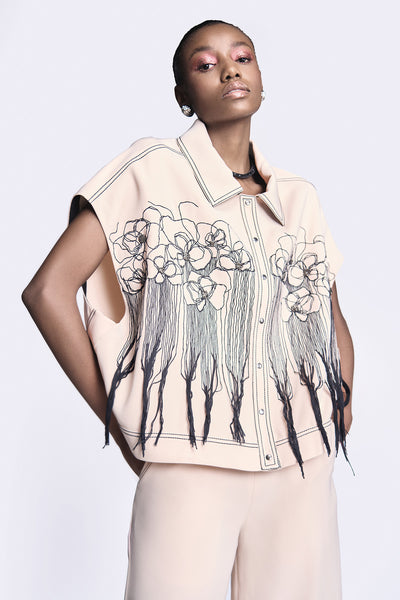 Abstract Roses Oversized Shirt Jacket With Flared Pants