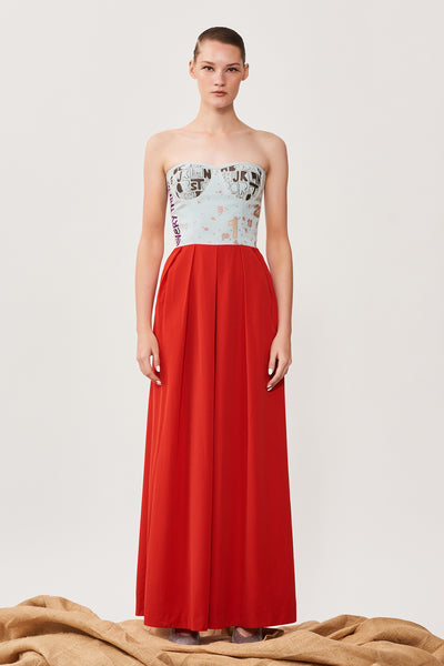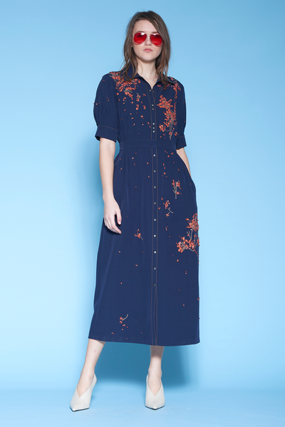 Abstract Flower And Branches Side Pleat Front Open Dress