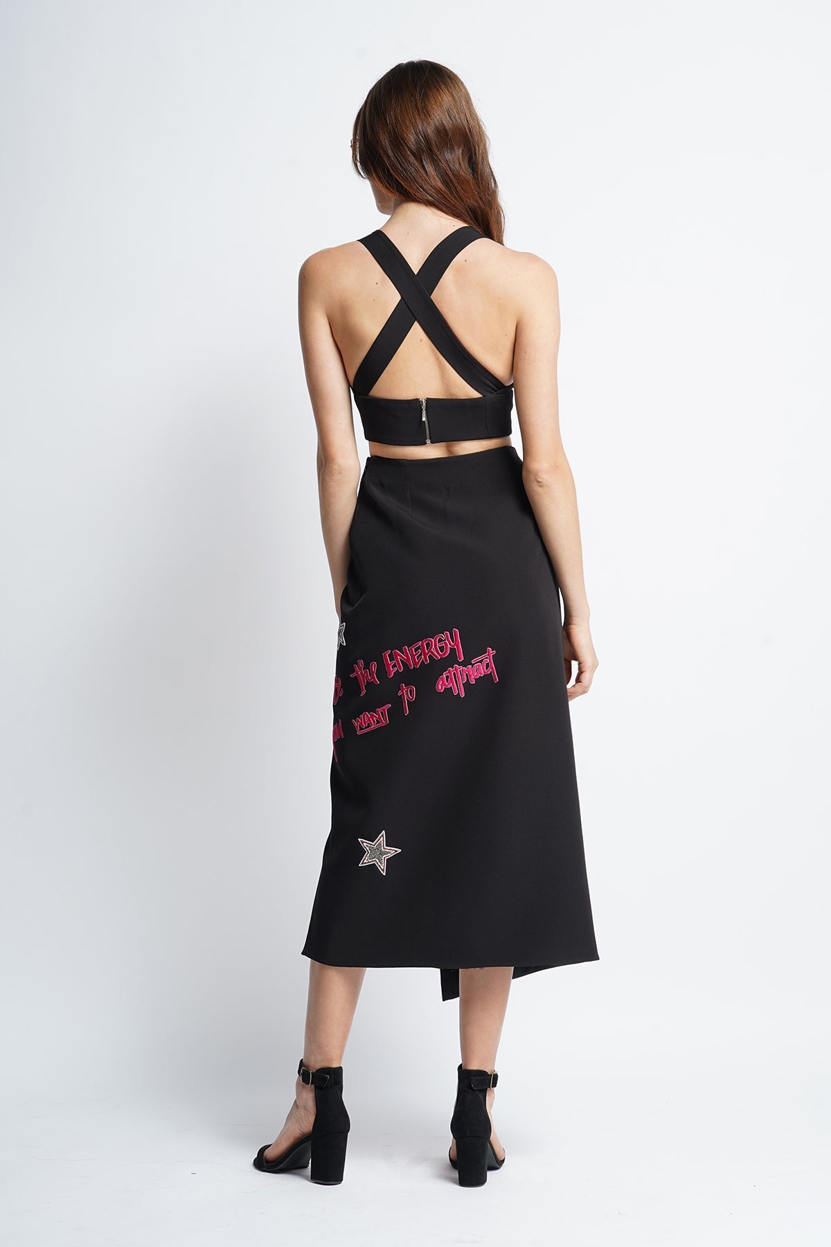 Bralette top with back metal zipper with satin lining.