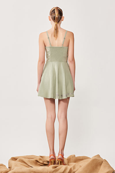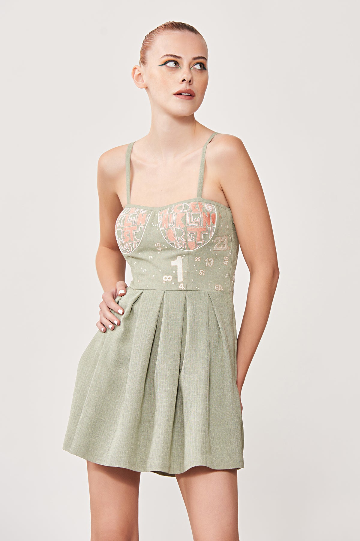 Corset Skater Dress With a to Z Embroidery. The Garment Has Pleats,side Concealed Zip and Partial Smoking at the Back.