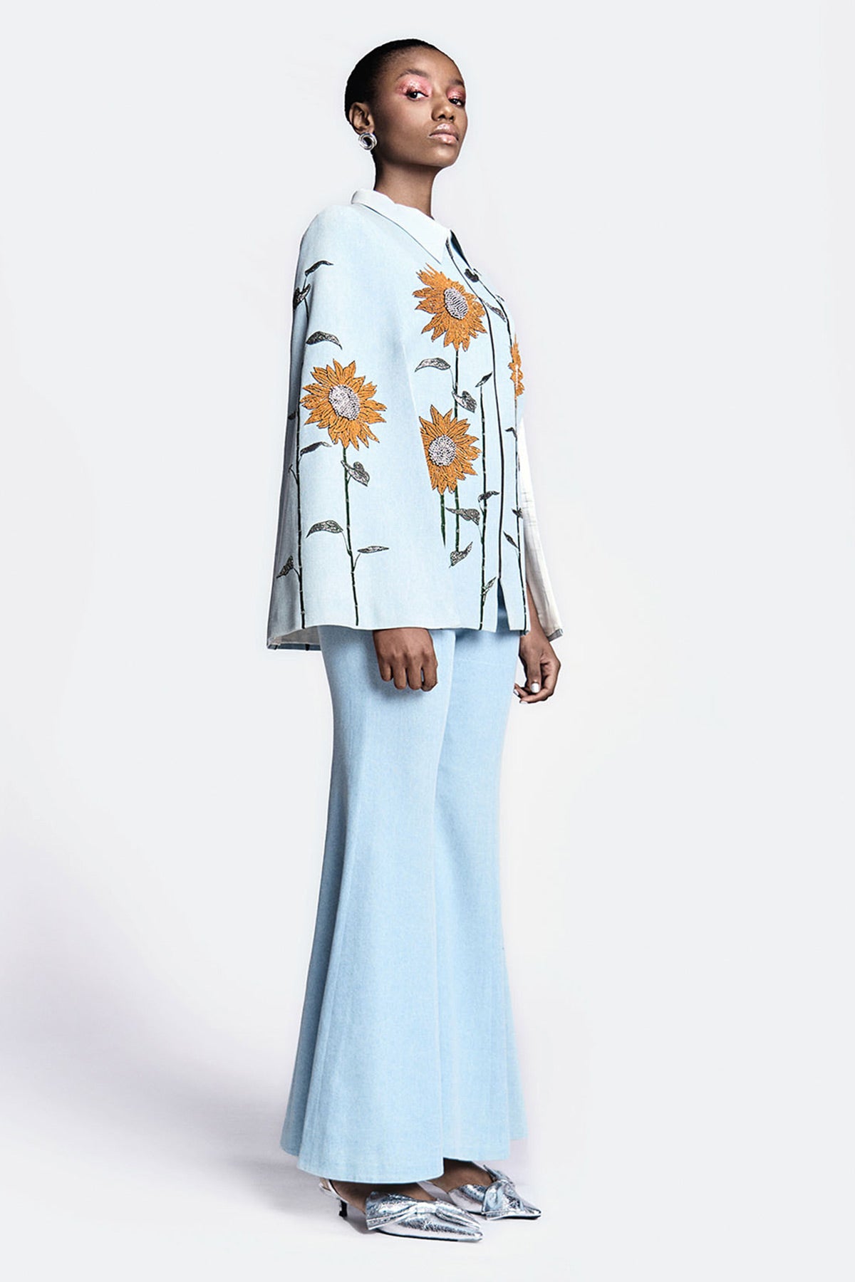 Bell Bottom Pants With a Side Concealed Zip Opening and a Semi-elasticated Back.