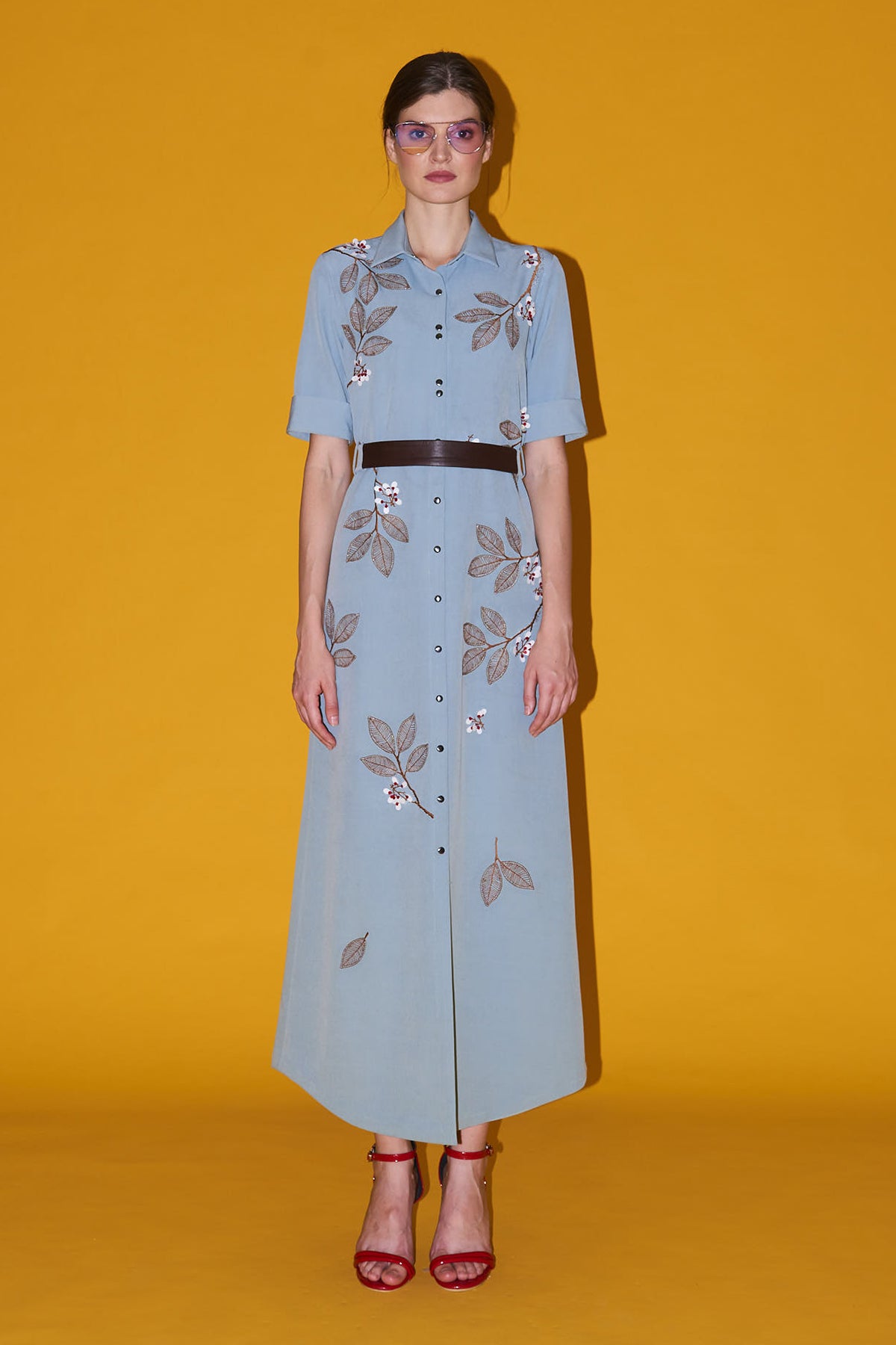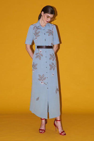 Bloom With Grace Long Shirt Dress With Leather Belt