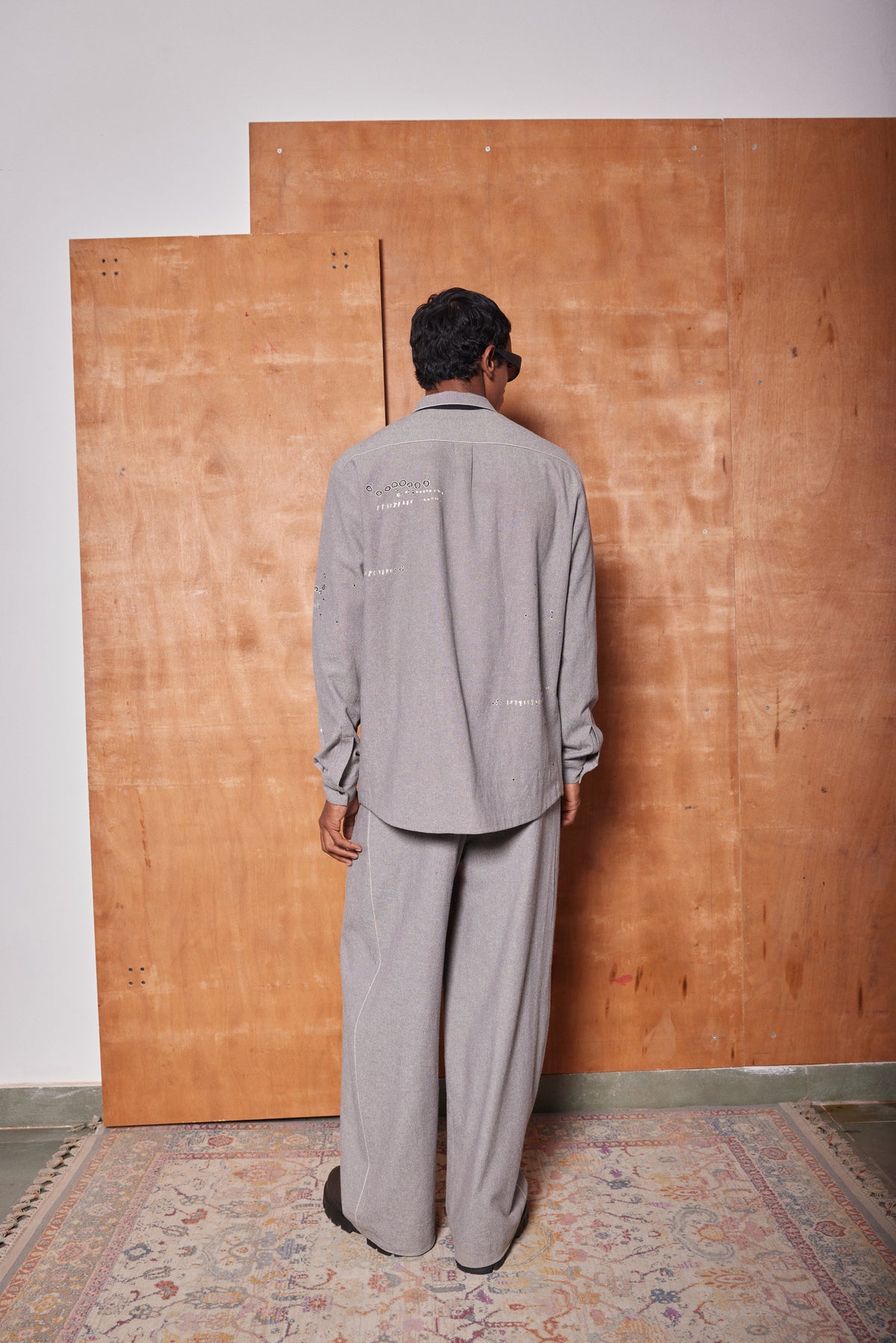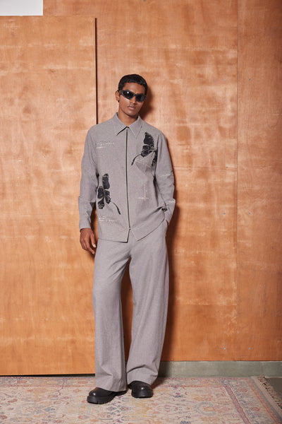 Full sleeves shirt with embroidered Fading Butterfly. It has front metal zip opening with collar and top stitching detail.
