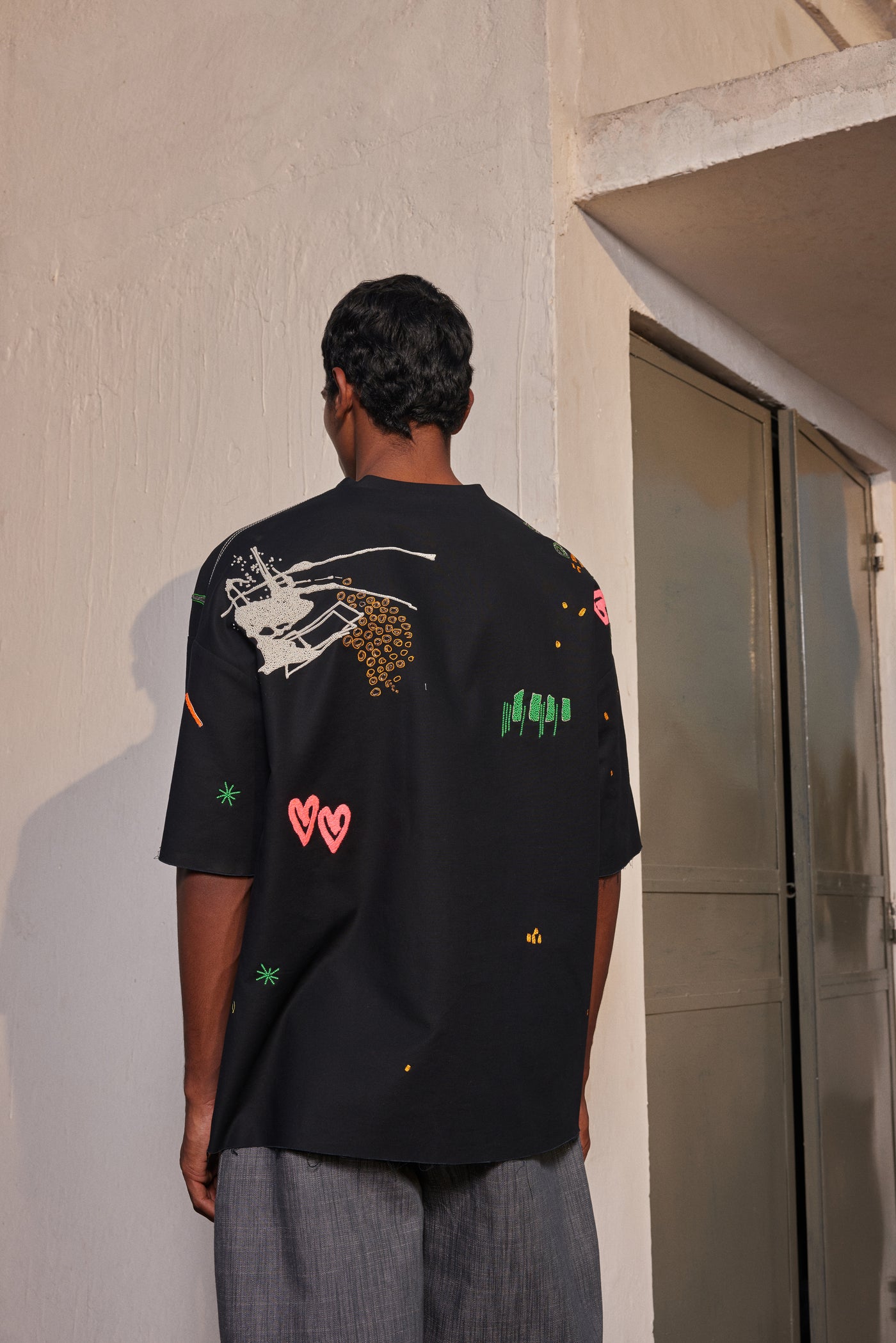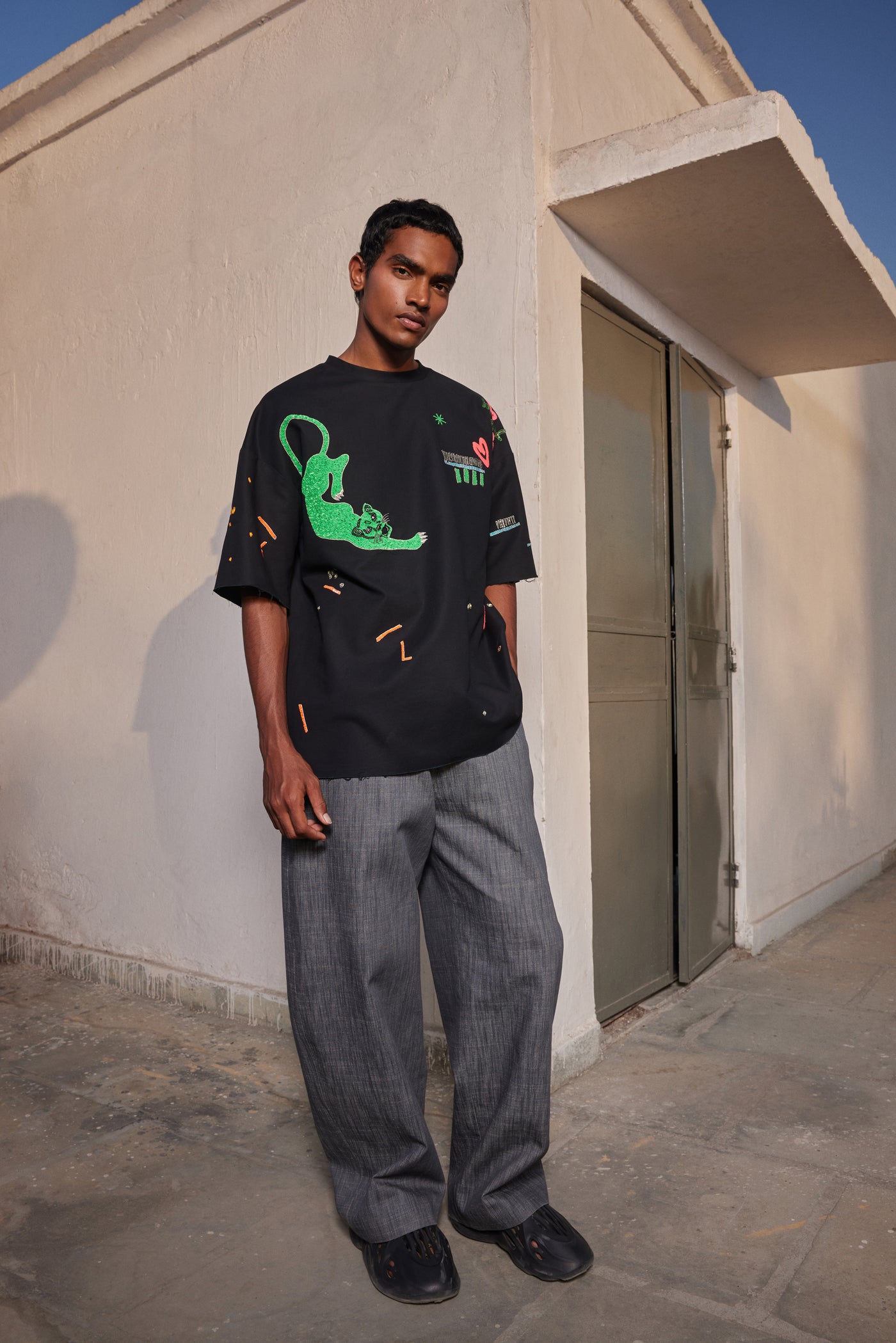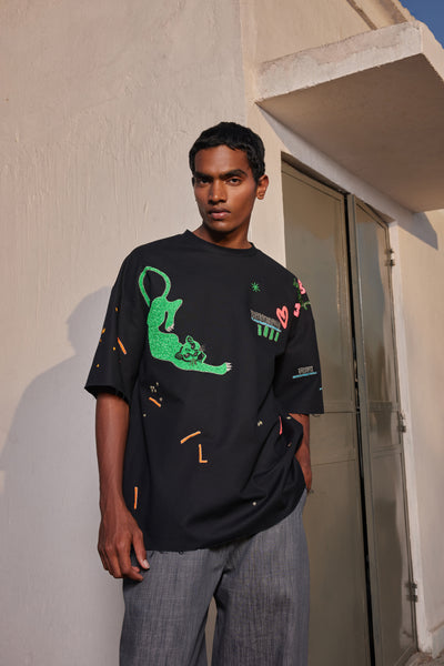 Boxy t-shirt with hand embroidered Funky panther, and top stitching detail on shoulder.