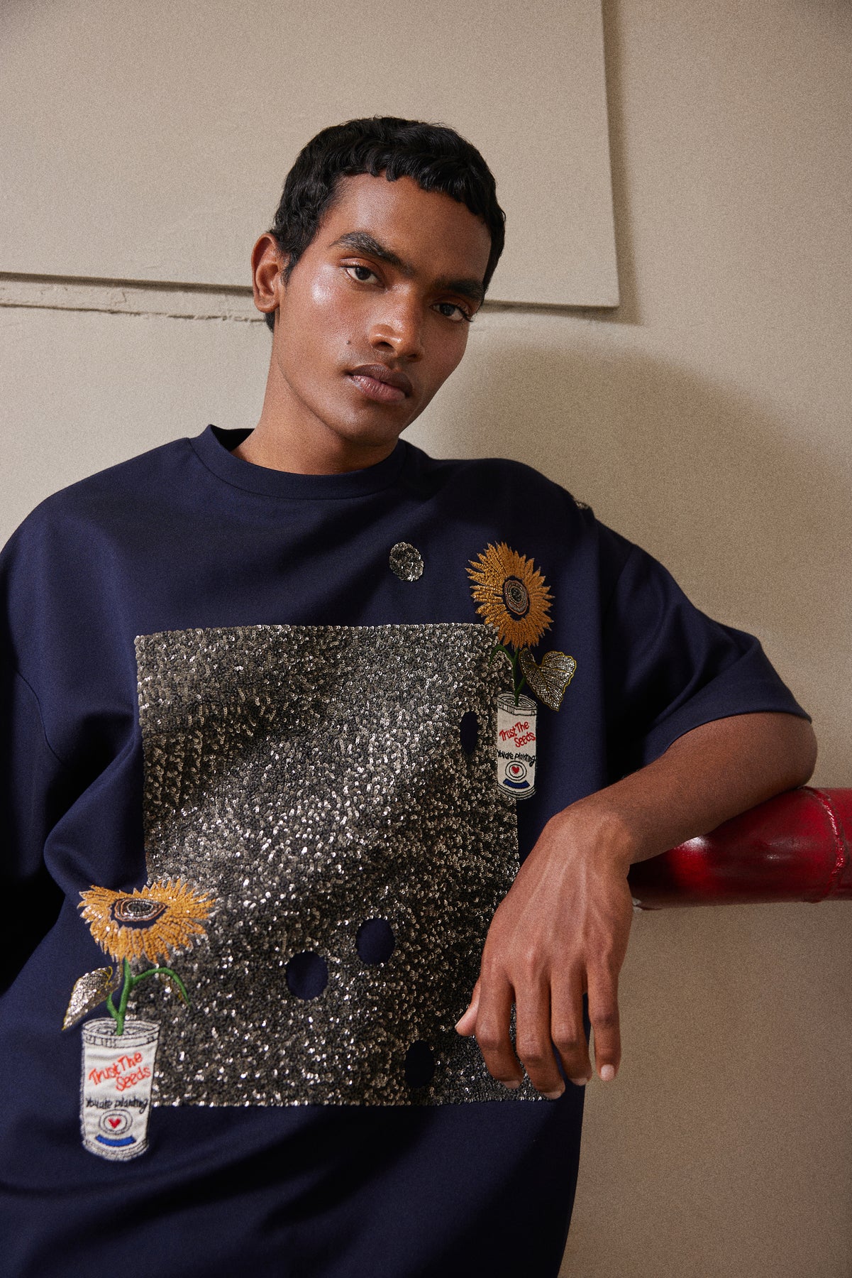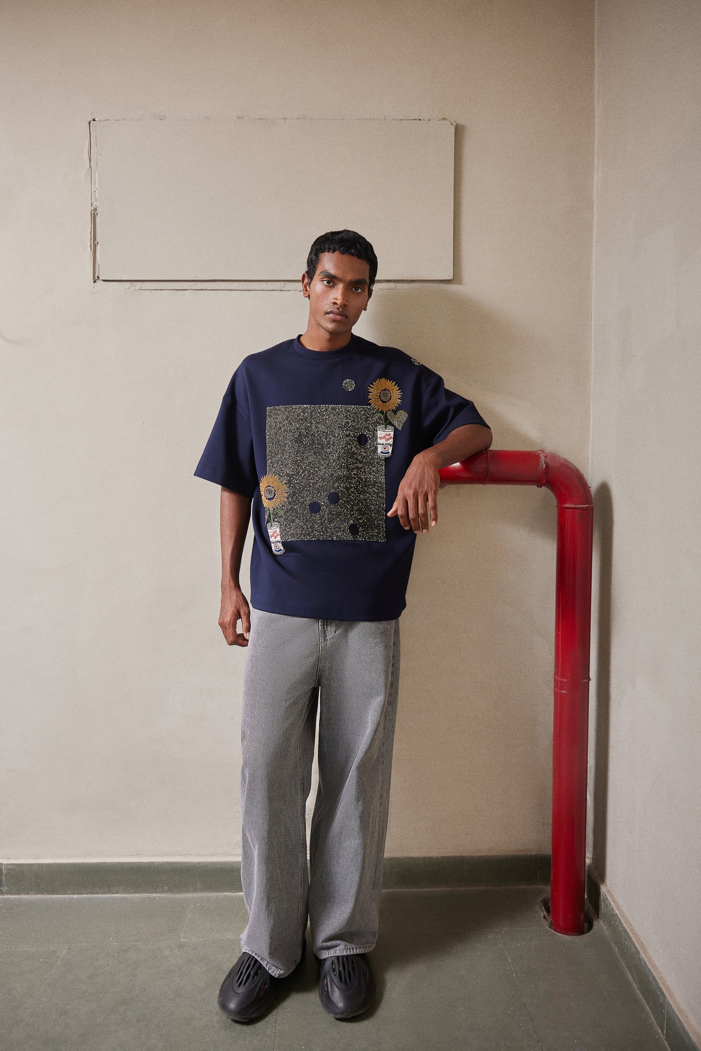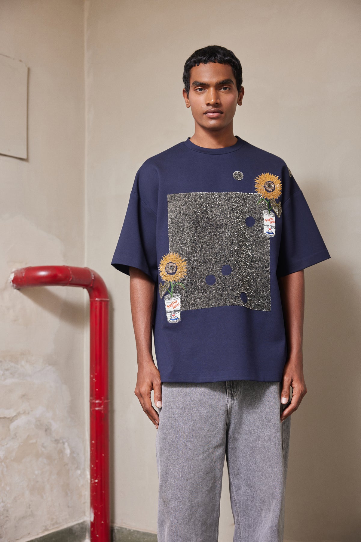 Boxy t-shirt with hand embroidered Pop can with Flower.