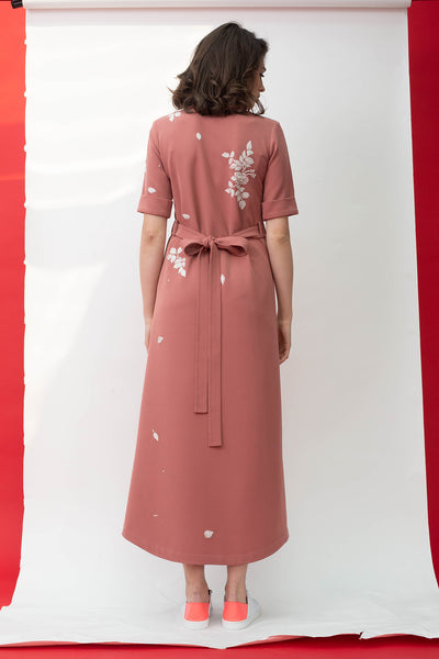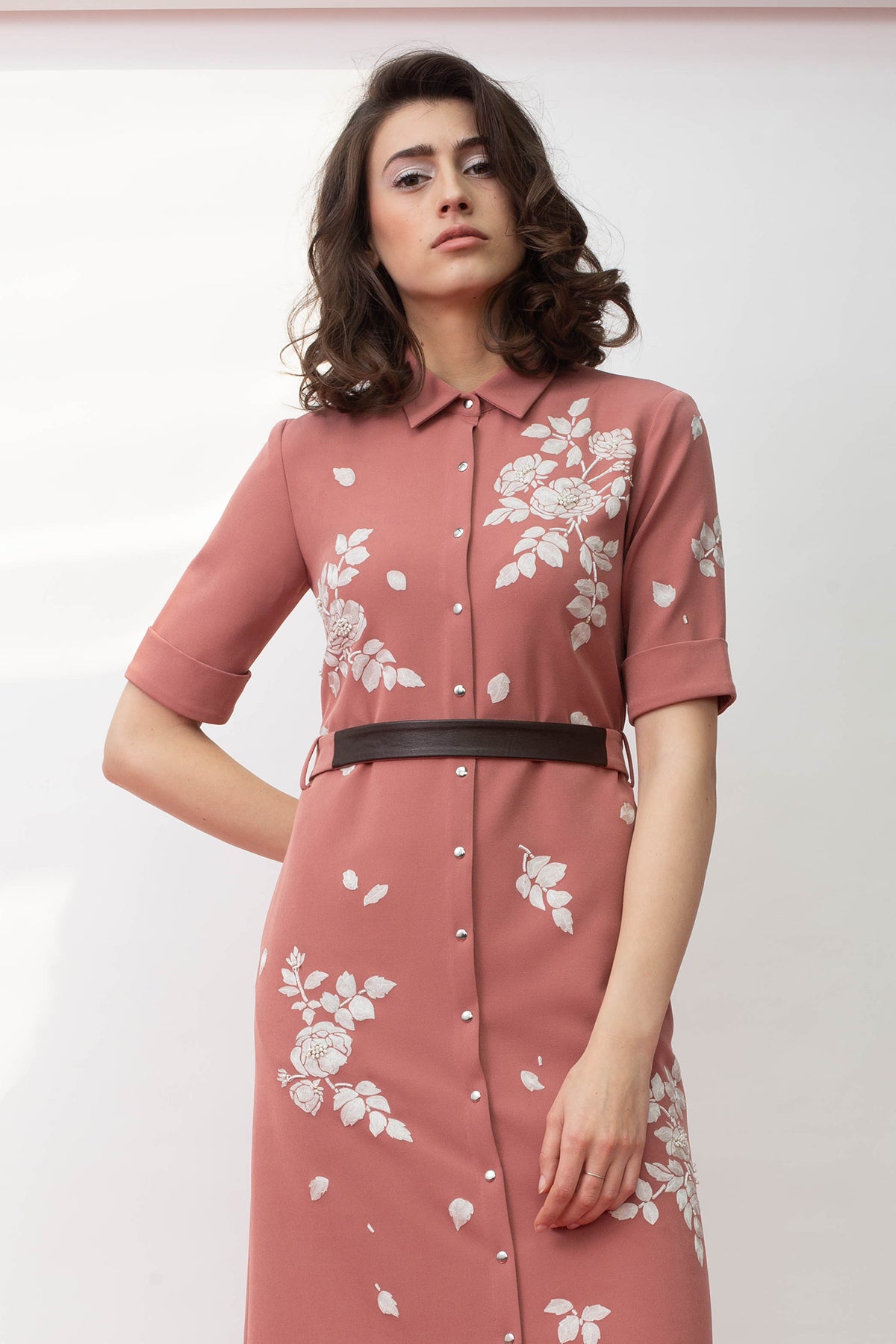 White Roses Long Shirt Dress With Leather Belt